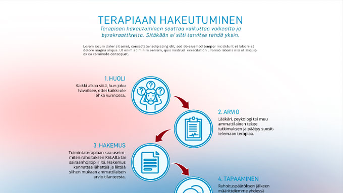 Terapiaan hakeutuvat ihmiset tarvitsevat jotain, mihin voivat ehdottomasti luottaa. Asiakkaat ovat yleensä vaikeassa elämäntilanteessa. He tarvitsevat empatiaa, luottamuksellisuutta, toivoa ja selkeää tietoa helposti omaksuttavassa muodossa. Vanhasta logosta poimimme ajatuksen toisiaan tukevista ihmisistä. Värimaailma, tematiikka ja rauhallinen sommittelu vastaavat asetettuihin tunneviestitavoitteisiin.